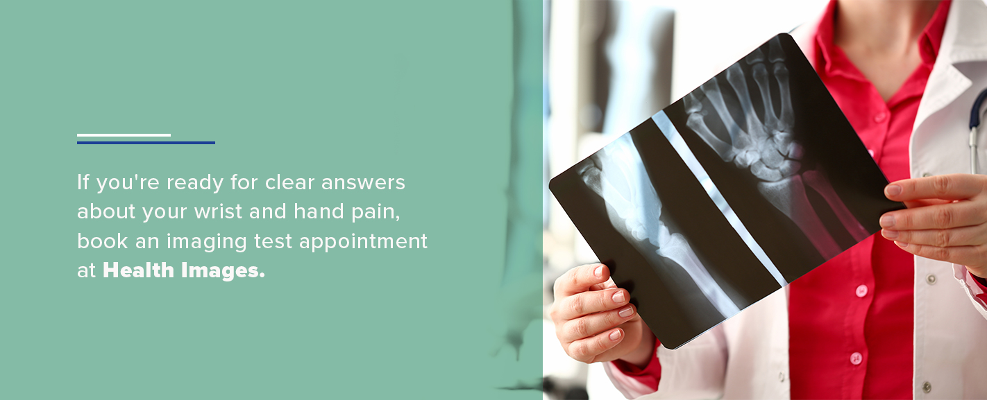 If you’re ready for clear answers about your wrist and hand pain, book an imaging test appointment at Health Images. Health Images offers immediate turnaround times so you can have high-quality, accurate results from your imaging test within hours of leaving the center. Along with fast results, we provide flexible and quick scheduling options to meet your needs.